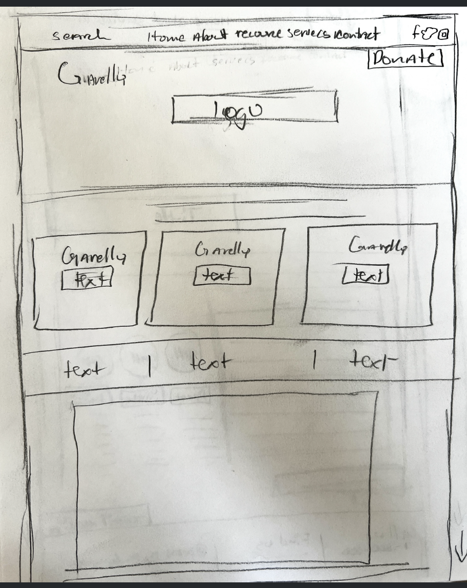 I started by sketching out how the interface layout would look and determining the placement of each section. I chose to place the logo on the left side and the navigation bar on the right, with a photo featured in the center of the homepage.